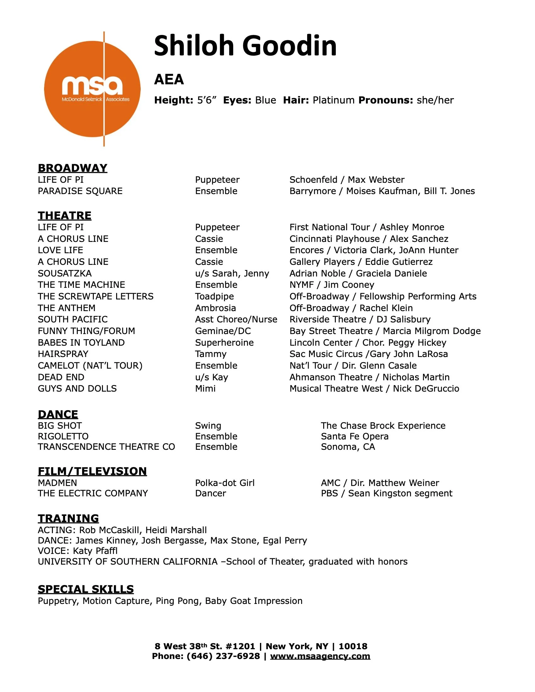 Choreography and Teaching Resumes available upon Request
